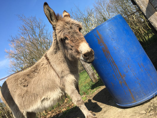 Als er iemand nieuw in de weide komt, kan ik vanop 10m afstand toekijken en pas nadien kom ik wat dichter. Ik kan soms lange tijd ter plaatsen genieten terwijl ik gemasseerd word. Misschien weet jij wat mijn favoriete massage plekjes zijn? Ik kan een karretje voorttrekken waarin kinderen kunnen zitten en ik maak graag wandelingen door het bos. Ik ben ook heel voorzichtig. Als het te steil is of als het moeilijk wandelen is, kijk ik eerst goed waar ik mijn voeten ga zetten. Dan pas, ga ik stap voor stap verder. Ik blijf, in tegenstelling tot Max, mooi achter de draden. Ik zal er niet onder kruipen. Maar... wat ik wel doe, is eten. Ik snoep heel graag, alle grassen, zelfs tussen de dorpelstenen.