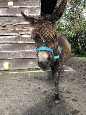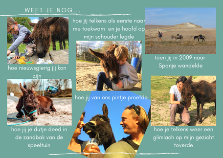 Hoi, Sem hier. Je herkent me direct aan mijn kuif en ik sta als eerste aan de poort om jullie op te wachten. Zoals jullie al hebben gelezen ben ik dus de zoon van Max. Vroeger, lang geleden woonden wij met z'n 7 bij een heer in Nederland, die kon helaas niet voor ons zorgen en liet ons over aan ons lot. Onze hoeven werden niet meer verzorgd. Onze stal was één en al stank, rottigheid en vies. Wij werden ziek en zwakten af tot we werden opgevangen in de stichting Ezelshoeve in Nederland. Toen we daar weer gezond waren, kregen wij tweeën een nieuw adresje in Leende. Oh wat waren dat 9 heerlijke, zorgeloze jaren bij Marga en Seli. Zij gaven ons heel veel liefde. Tot we het bericht kregen dat onze weide verkocht werd... Oh nee wat nu? Zo blij dat Manon ons is komen halen uit Leende, anders moesten wij terug naar een asiel...